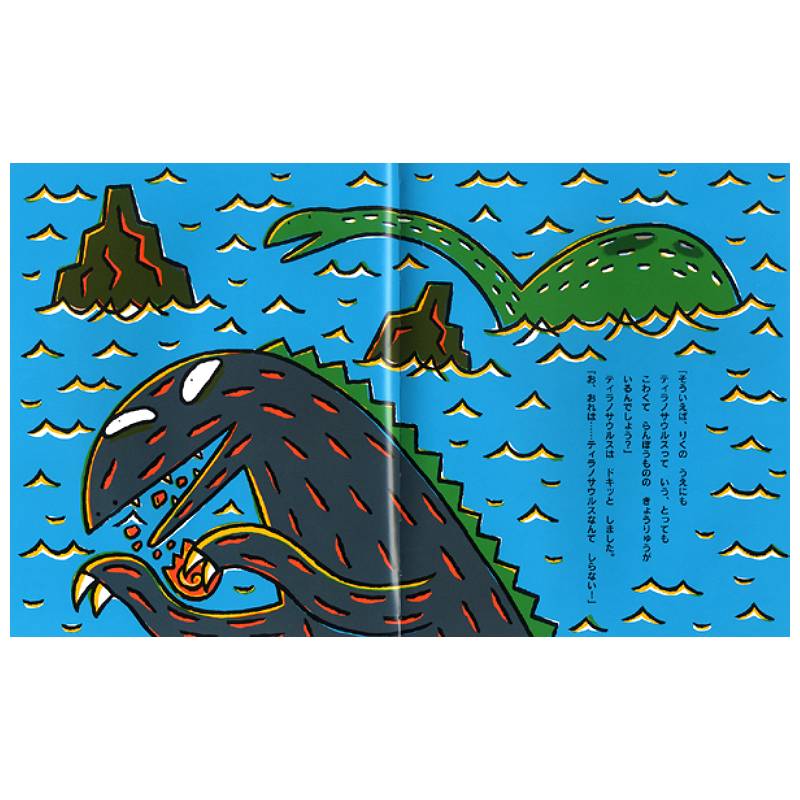 世界一あばれんぼうで意地悪なティラノサウルスがいました。あやまって海に落ちておぼれかけた時、ティラノサウルスを助けてくれたのは、心の優しいエラスモサウルスだったのです。あたりまえのように優しくしてくれるエラスモサウルスをティラノサウルスはいつしか愛しく思うようになりました。でも、ティラノサウルスは、自分がどんなにあばれんぼうの意地悪だったかをいえず、うそをついてしまいます。ところが……感動の友情物語。
