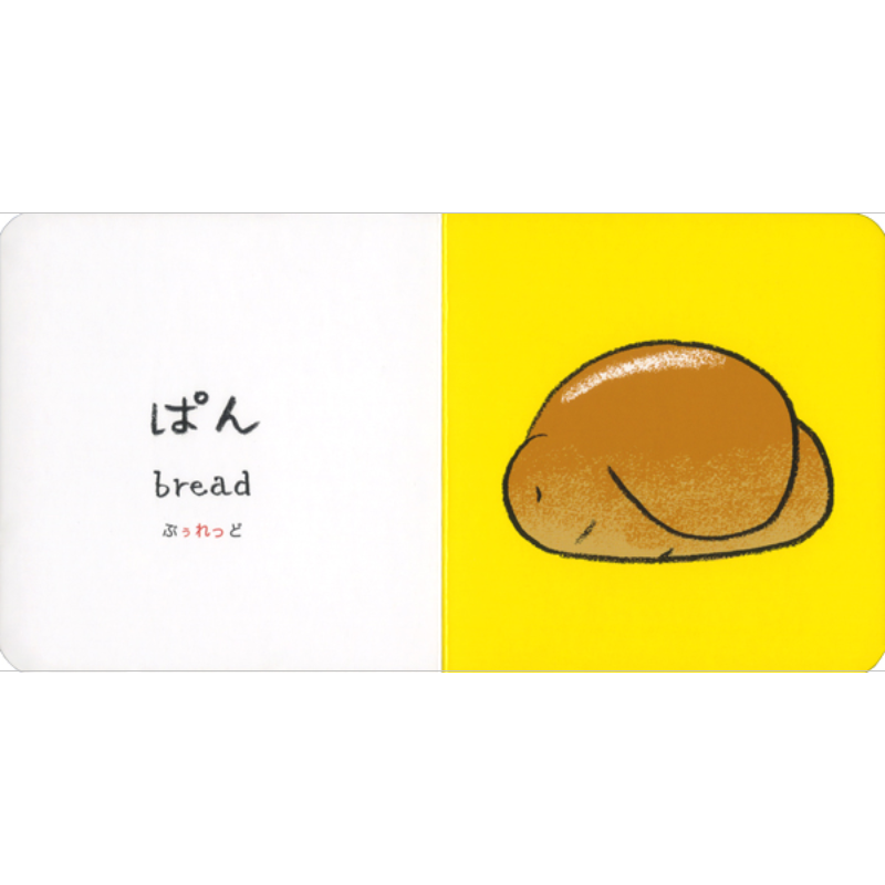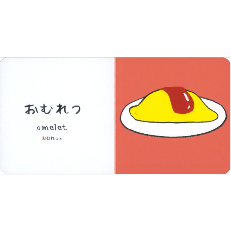 かわいく鮮やかでおしゃれなイラストに日本語と英語で、おにぎり、みそしる、ぱん、すーぷ、はんばーぐなど最初におぼえたいたべものを15紹介。- シリーズ