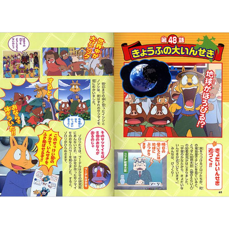 キツネのゾロリと、ふたごのイノシシ、イシシ・ノシシがくりひろげる、大ぼうけんの物語。わるいことをたくらんで、いたずらをしかけては、いつも失敗。どんなことがあっても、くじけず、いつも前向きなゾロリは、子どもたちのヒーローです。